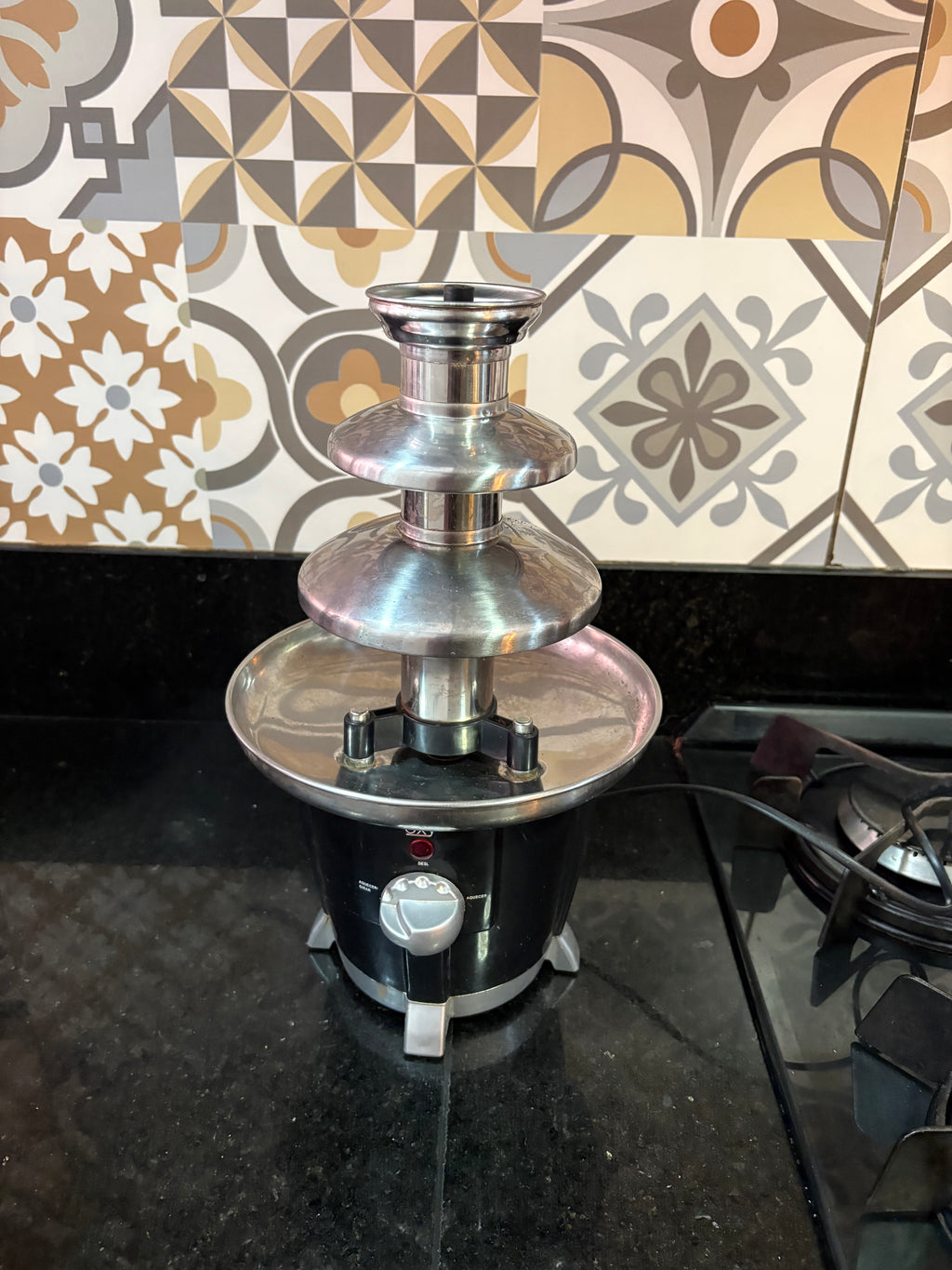 Fonte de chocolate elétrica em ótimo estado, perfeita para fondue, festas, encontros ou momentos especiais em casa. Mantém o chocolate sempre aquecido e com fluxo contínuo, garantindo praticidade e um visual elegante na mesa.